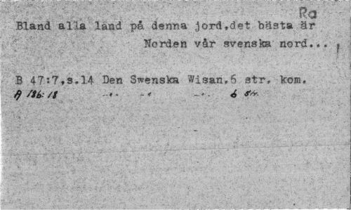 //// Bland alla land på denna jord,det bästa är //// borden vår svenska nord... ? //// B 4?t7,s.l4 Den Swenska Wisan.5 str. kom. //// tf St(>: // _ y £ ^ ////