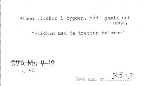 //// Bland flickor i bygden, båd' gamla och //// unga, //// "Flickan med de tretton friarne" s. 93 //// ? //// SVA ccc. nr...rf...-T. ////