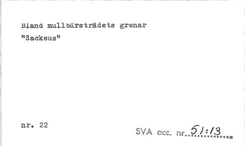 //// Bland mullbärsträdets grenar "Sackeus11 //// nr. 22 /r , . ^ //// SVA ccc. nr..?/-'/3 ... ////