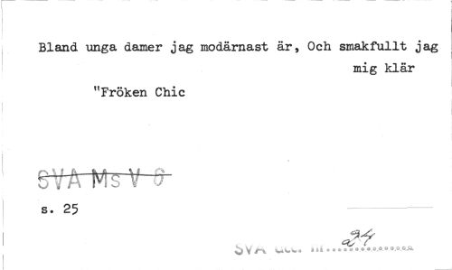 //// Bland unga damer jag modärnast är, Och smakfullt jag //// mig klär //// "Fröken Chic //// fffpr^f-r //// s. 25 //// «a ...M-.ww ////