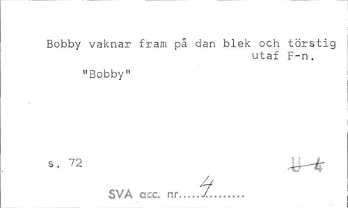 //// Bobby vaknar fram på dan blek och törstig //// utaf F-n. //// "Bobby" //// j //// i //// j //// s . 72 Xz^ //// SVA ccc. nr...1...i //// _ ___ ___• ¦ i ////