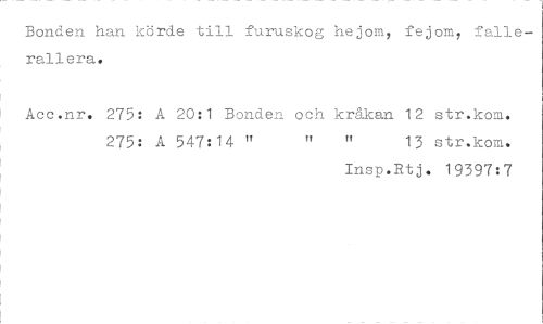 //// ±sonaen nan icorae xin iurusicog .. om, xe^om, laiie-rallera. //// Acc.nr. 275: A 20:1 Bonden och kråkan 12 str.kom. //// 275: A 547:14 " " " 13 str.kom. //// Insp.Rtj. 19397:7 ////