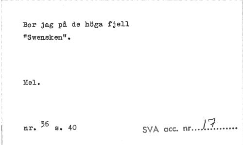 //// Bor jag på de höga fjell "Swen.sk en.". //// Mel. //// nr. 5d s. 40 SVA acc. nr...i.7... ////