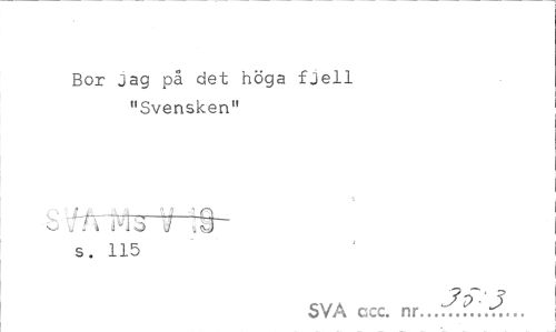 //// Bor Jag på det höga fjell "Svensken" //// o cA j ri i //// s. 115 i //// SVA ccc. nr...\ ////