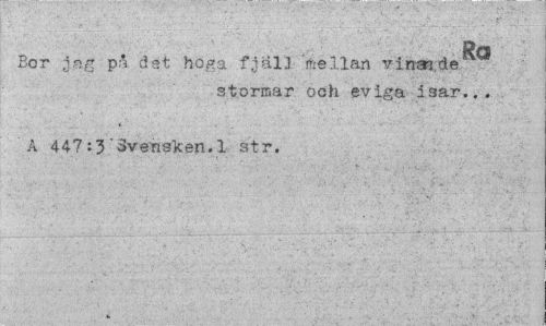 //// ; 1 : • Ra: - //// Bor jo g pn det höga fjälJ mellan vinande //// stormar ooh eviga isar... //// A 447:3'Svensken.1 str. t. ////