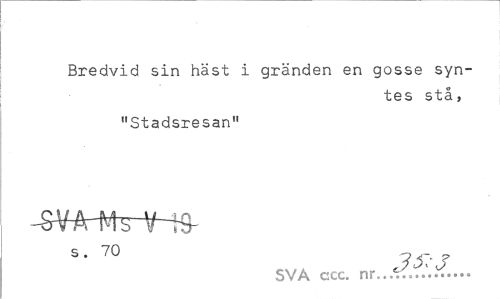 //// Bredvid sin häst i gränden en gosse syntes stå, //// "Stadsresan" //// s. 70 ? //// SVA ccc. nr.. e ... ////