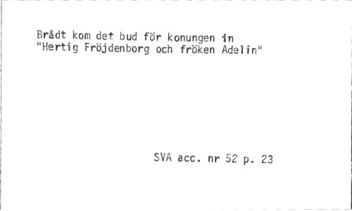 //// Brådt kom det bud för konungen 1n "Hertig Fröjdenborg och fröken Adel in" //// i //// SVÄ acc. nr 52 p. 23 ////
