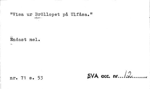 //// "Visa ur Bröllopet på Ulfåsa." Endast mel. //// nr. 71 s. 53 SVA ccc. nr.../c&... ////