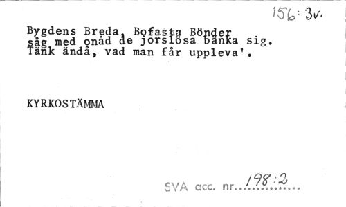 //// Bygdens Breda. Bofasta Bönder såg med onåd de jorslösa banka sig. Tänk ändå, vad man får uppleva'. //// KYRKOSTÄMMA //// SVA ccc. nr../.2f.'7... ////