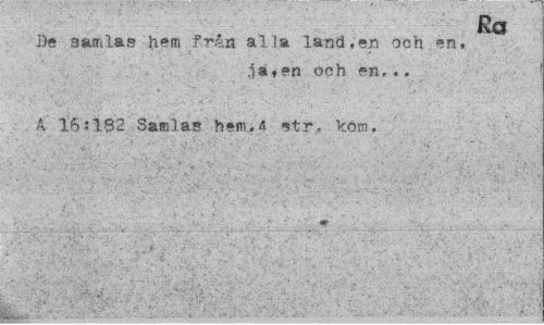 //// Ka //// De samlas hem från alla land,en och.en, //// ja»en och en,.. //// A 16:182 Samlas hem.A str, kom. //// ;-. - v.; ' ' v .;•:¦ . -; . - ¦ •> , ¦' : //// , i . ;¦'• : ¦ ¦" ////