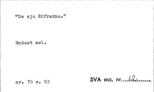 //// "De sju Röfrarne." Endast mel. //// nr. 70 s. 52 SVA ccc. nr.. JoL,... ////