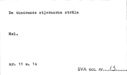 //// De tindrande stjernorna stråla Mel. //// nrr. 1*1 s. 14 //// SVÅ ccc. nr... iå... ////