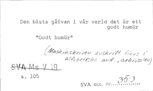 //// Den bästa gåfvan i vår verld det är ett //// godt humör //// "Godt humör" //// L^A&tnSkjrtsetx auSJcrt'^ S/i,»s //// beffSkA aorf. f Oyrlc/uSO fel) //// £- 105 //// SVA ccc. nr... ////