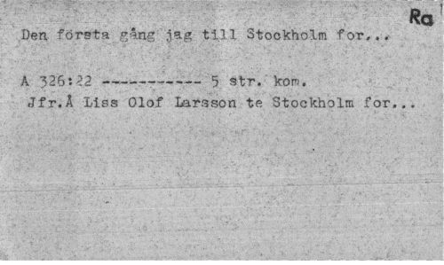 //// Ka //// Den första gång jag till Stockholm for,.. //// A 326i 22 ---—---5 str. kom. //// Jfr.Å Liss Olof Larsson te Stockholm for... ////