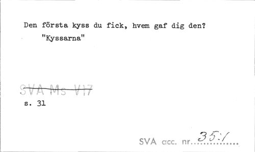 //// Den första kyss du fick, hvem gaf dig den? "Kyssarna" //// SVA Ms VI? //// s. 31 //// SVA ccc. nr..ff.X.:/... ////