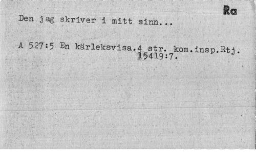 //// Res //// Den jag skriver i mitt sinn... //// A 527i5 En kärleksvisa.4 str. kom.insp.Rtj. //// 15419:7. ////