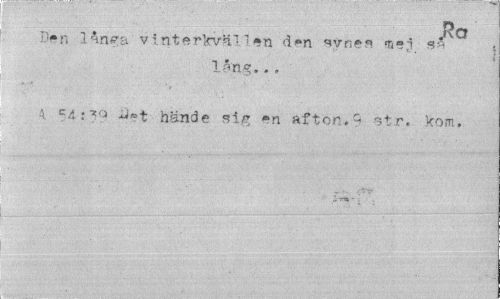 //// Za //// I>n 1 ånga vinterkvällen d»n synes mej ss //// lång... //// A 54:jo ij»t hände sig »n afton.9 str. kom. ////