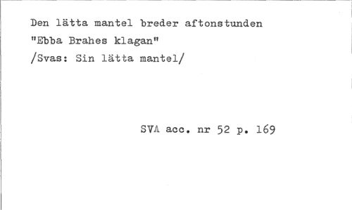 //// Den lätta mantel breder aftonstunden "Ebba Brahes klagan" /Svas: Sin lätta mantel/ //// SYA acc. nr 52 p. 169 ////