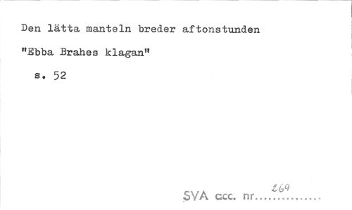 //// Den lätta manteln "breder aftonstunden "Ebba Brahes klagan" s. 52 //// Ibl //// SVA gcc, nr... ////