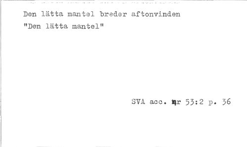 //// Den lätta mantel breder aftonvinden "Den lätta mantel" //// SYA acc. Hr 53:2 p. >6 ////