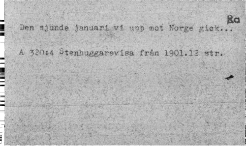 //// Ro //// | Den sjunde januari vi unp mot Norge gick... //// i ¦ ' ¦ •: " ' ' ; . ' '' j A 320;4 Stenimggarevisa från 1901.12 //// i I //// S ^ //// 4-y-V'*. ¦ "-.:'v '.v-- " " ''* ' •¦ V .'.-v ; , ¦1 ' / ' ' ' ; //// n ////