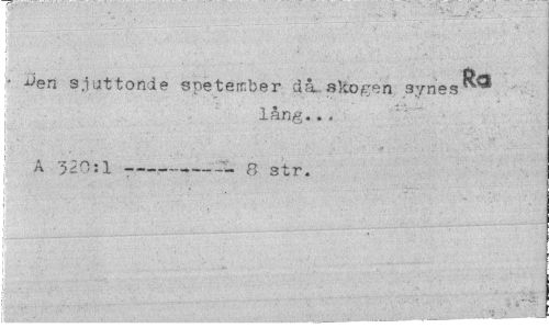 //// Res //// i* ^en sjuttonde spetember då..skogen synes ^ //// lång. //// A 320:1 --- 8 str. ////
