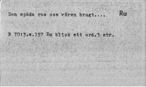//// Ra //// Den späda ros oss våren bragt... B 70:3,3.157 En blick ett ord.3 str. ////