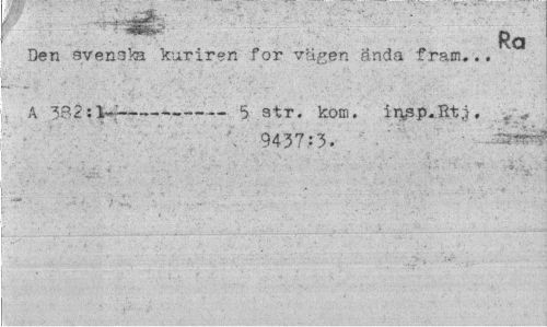 //// Den svenska kurireri for vägen ända fram... //// A 382:1--- 5 str. kom. insp.Rt.i, . f //// 9437:3. ' mnm ////