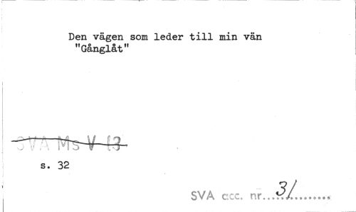 //// Den vägen som leder till min vän "Gånglåt" //// s. 32 //// SVA ccc. nr. //// 31... ////