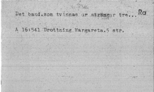 //// Det band,550111 tvinnas ur strängar tre.,.1" //// A 16:541 Drottning Margareta,5 str, //// ¦ ////