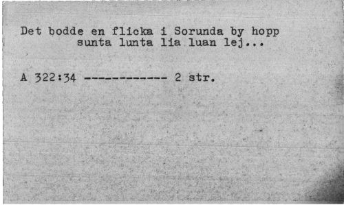 //// Det bodde en flicka i Sorunda by hopp sunta lunta lia luan lej... //// A 322:34 --- 2 str. //// ; ' . ' • ' .. ( ¦ • _ ' ; ' • , . •¦ ,'. 'i . . //// • ' r- v-Si ////