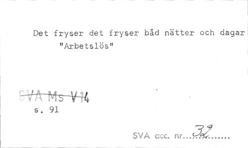 //// Det fryser det fryser båd nätter och dagar "Arbetslös" //// s. 91 //// ^^A ccc. ////