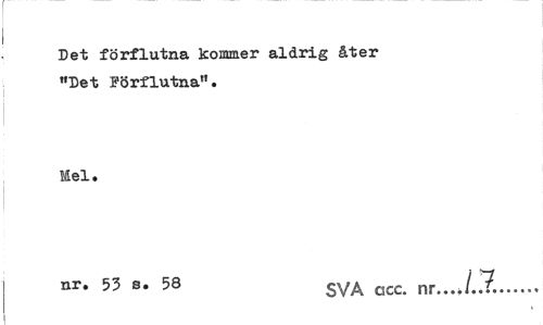 //// Det förflutna kommer aldrig åter "Det Förflutna". //// Mel. //// nr* 53 s. 58 SVA ccc< nr..J.7... ////