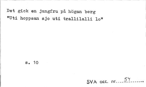 //// Det gick en jungfru på högan "berg "Uti hoppsan sjo uti trallilalli lo" //// s. 10 //// SVA acc. nr...H... ////