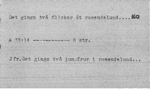 //// Det gingo två flickor åt rosendelund... &Q //// A ?3:3 4 —---8 str. //// Jfr.Det gingo två jungfrur i rosendelund... ////