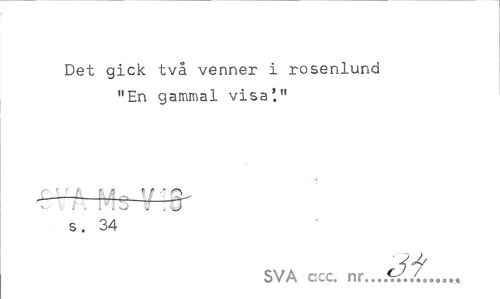 //// Det gick två venner i rosenlund "En gammal visa'." //// s. 34 //// SVA ccc. nr. ////