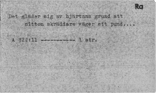 //// ™a //// Det gläder mig av hjärtans grund att //// nitton skräddare väger ett pund... //// ' k- ¦ - . ; - ..v,"''-1. ' v ' A 32?: 11 —--- 1 str. ////