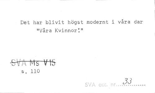 //// Det har blivit högst modernt i våra dar "Våra Kvinnor'" //// Ms Vltr //// s. 110 //// M... ////