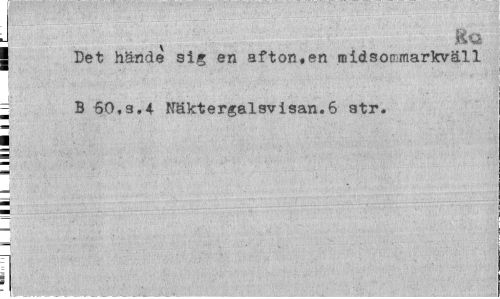 //// J Ko //// Det hände sig en afton,en midsommarkväll //// ^ B 50,3,4 Näktergalsvisan.6 str. //// i _ //// B ////