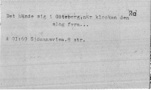 //// Rd //// Det hände si^ i Göteborg,när klockan den //// slog fyra.». //// A ?1:69 Siöinansvipa.B 3tr. ////