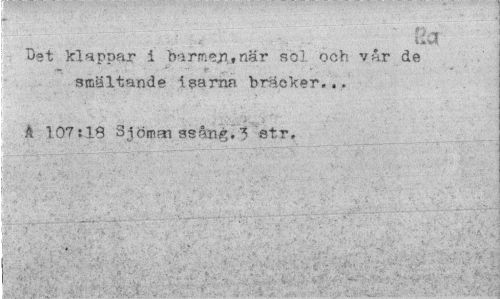 //// " Ser" //// Bet klappar i barmen,när sol och vår de smältande isarna bräcker... //// ! //// k 107:18 Sjömai ssån£. 3 str, //// / /'.'.V- - ' . \ ... > ;vy' % , ,/" . | //// I.A ¦ * ' r .. A, _ « £ i ' . ¦ • ' ' . * -i f -' "- ¦ I'' ' \ ','tt - ////