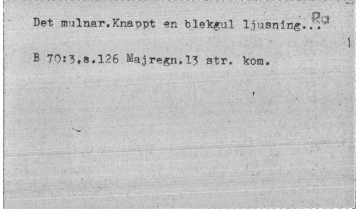 //// • Pr? //// Det mulnar.Knaopt en blekgul ljusning... //// S //// B 70:3,8.126 Majregn.13 str. kom. //// t //// . - //// .—... / . ... .. \ . ////