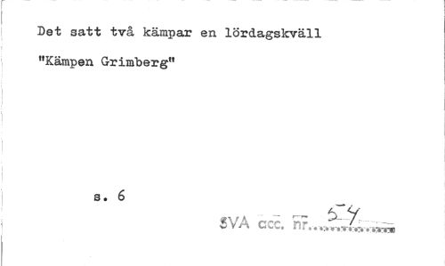 //// Bet satt två kämpar en lördagskväll "Kämpen Grimberg" //// s.6 _ //// - — t y //// SVA ccc. ////