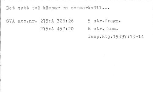 //// Det satt två kämpar en sommarkväll... //// SVA acc.nr. 275:A 326:26 5 str.fragm. //// 275:A 457:20 3 str. kom. //// Insp.Rtj.19397:13-44 ////