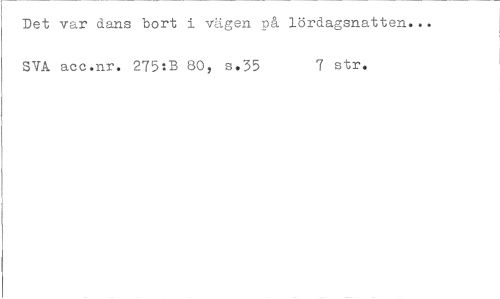 //// Det var dans bort i vägen på lördagsnatten... SVA acc.nr. 275:B 80, 3.35 7 str. ////