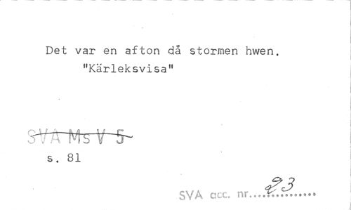 //// Det var en afton då stormen hwen. "Kärleksvisa" //// s. 81 //// SVA ccc. nr...K... ////