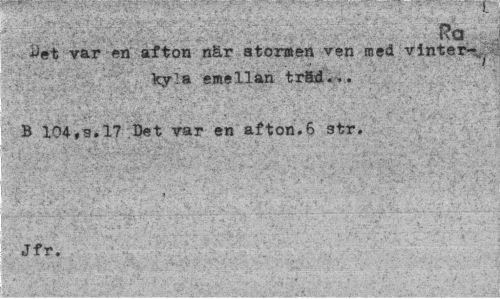 //// kyla emellan trSd.,. B 104,s.17 Det var en afton.6 str. //// . Jfr. . ; : ////
