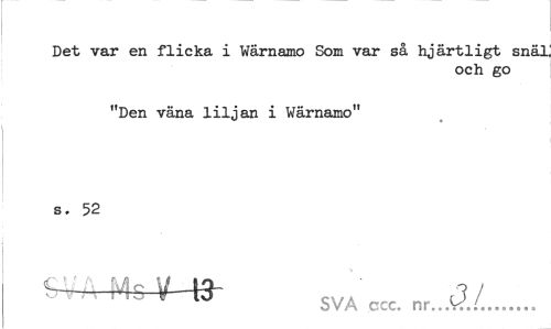 //// Det var en flicka i Wärnamo Som var så hjärtligt snäl //// och go //// "Den vana liljan i Wärnamo" //// s. 52 //// SVA ccc. nr^-W..'...» ////