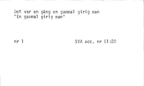//// Det var en gång en gammal girig man //// "En gammal girig man" //// nr 1 SVA acc. nr 51 :20 ////