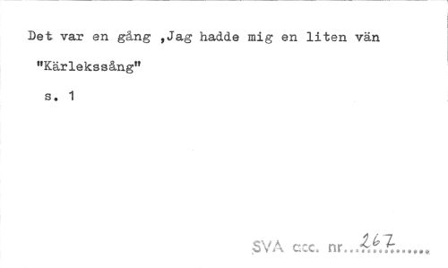 //// Det var en gång ,Jag hadde mig en liten vän "Kärlekssång" s. 1 //// SVA ccc. nr... ////